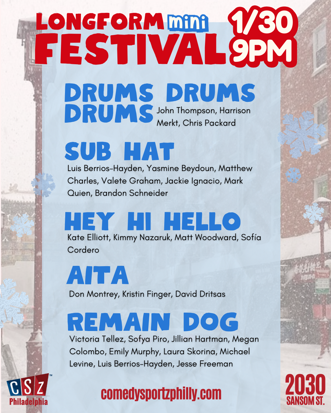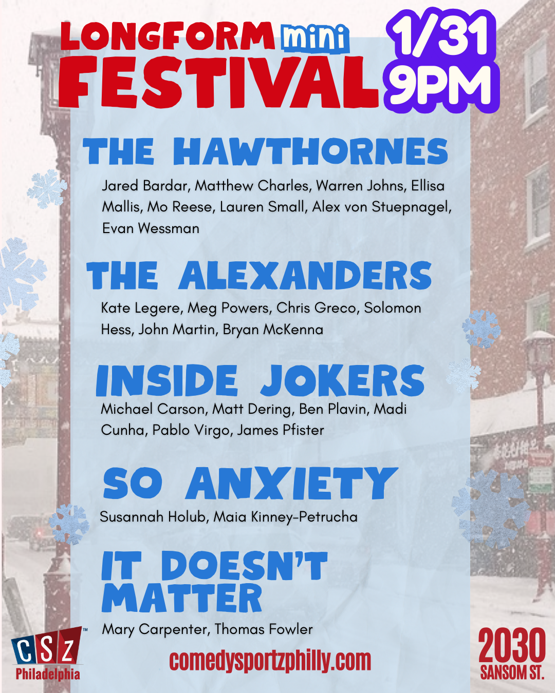 Join CSz Philadelphia as we cozy up this winter with our 2nd Annual Longform Mini Festival!