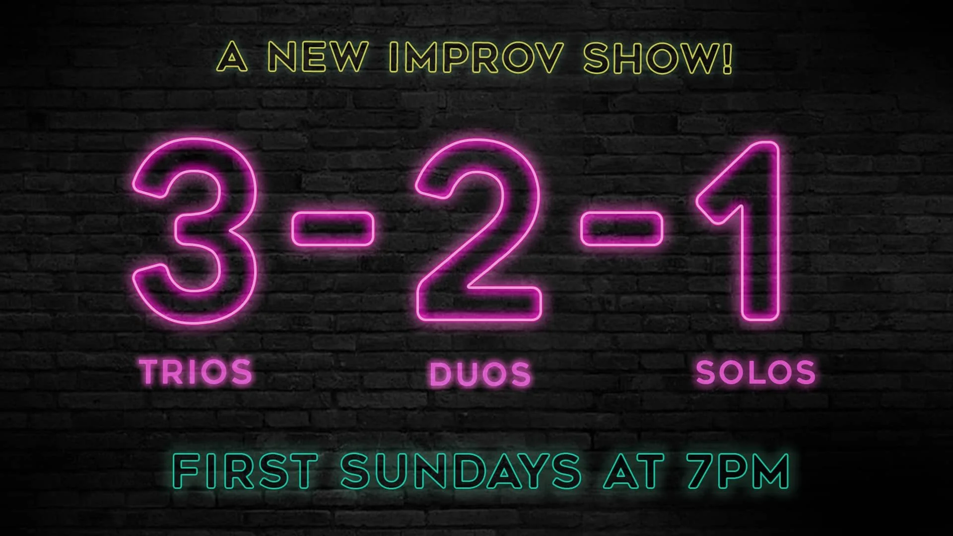 3-2-1 is a new monthly improv show that highlights the creativity of smaller improv groups; specifically Trios, Duos, and Solos. The last Sunday of each month, you can experience a new combo of performers, styles, and formats.
